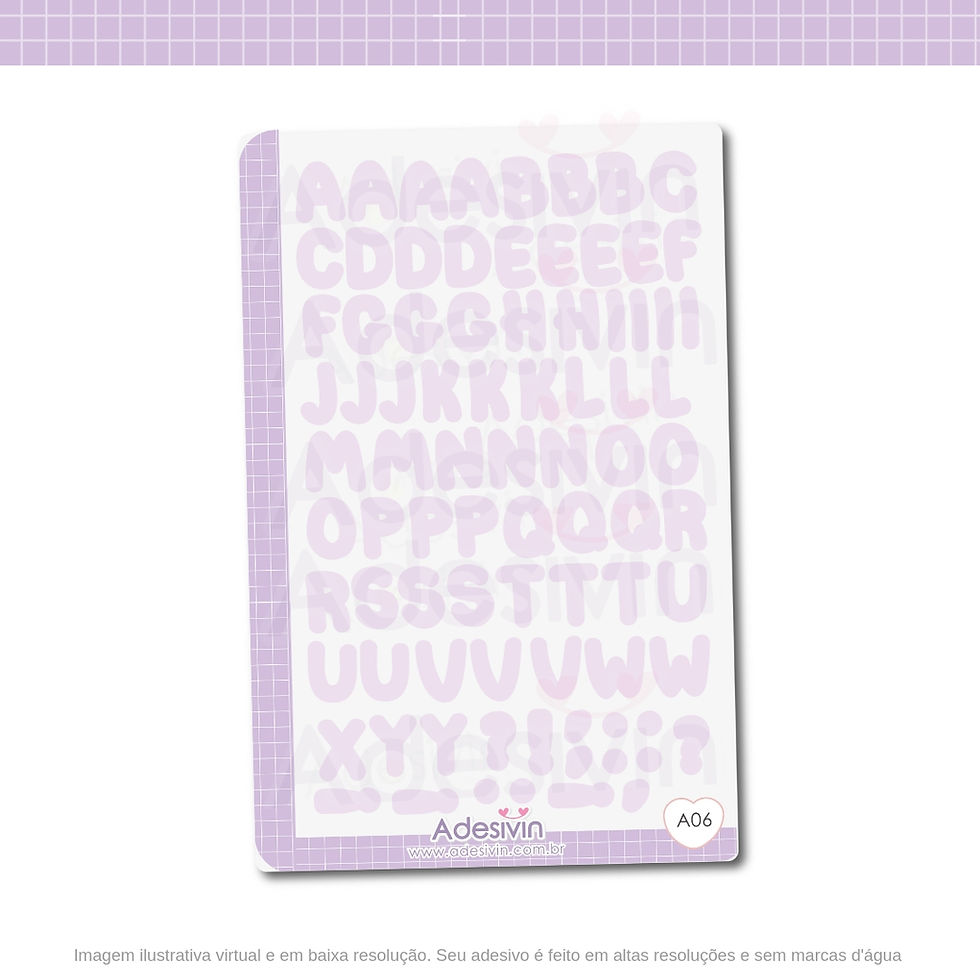 A06 - Cartela Adesivo Alfabeto Roxo Pastel