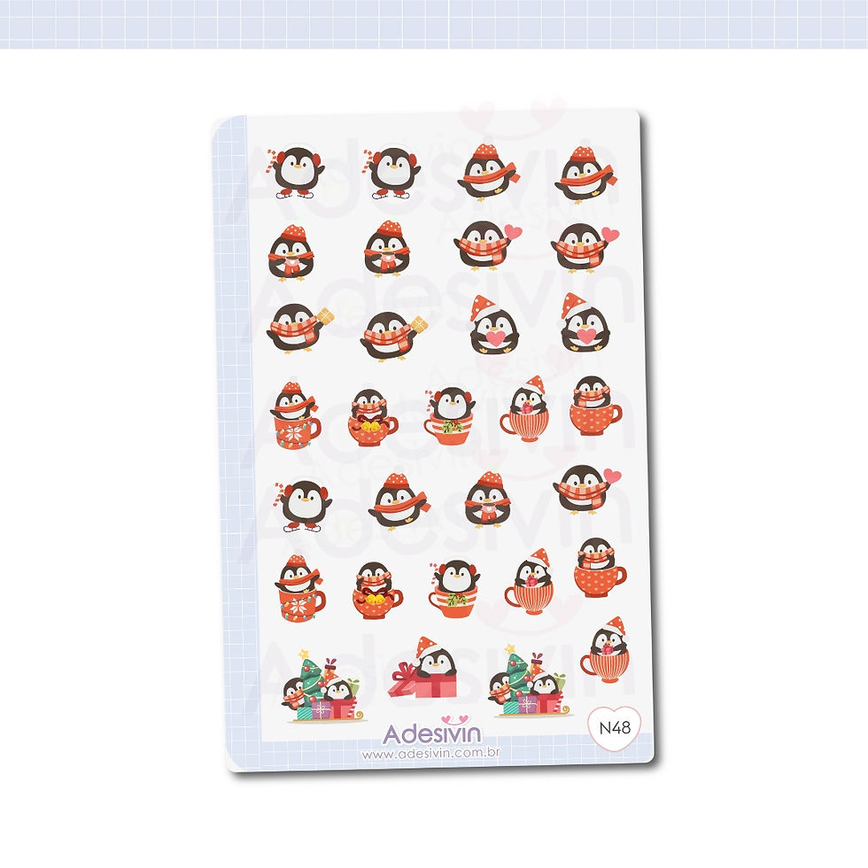 N48 - Cartela de Adesivo Pinguin Natalinos