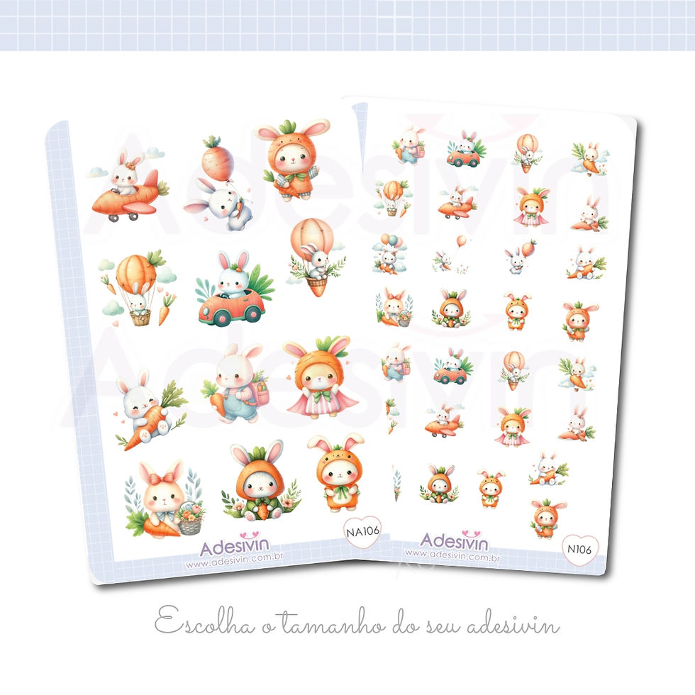N106 - Cartela Adesivo Coelhos e Cenouras