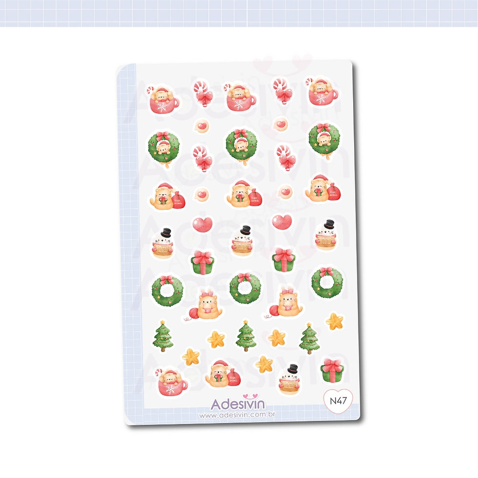 N47 - Cartela de Adesivo Gatos Natalinos